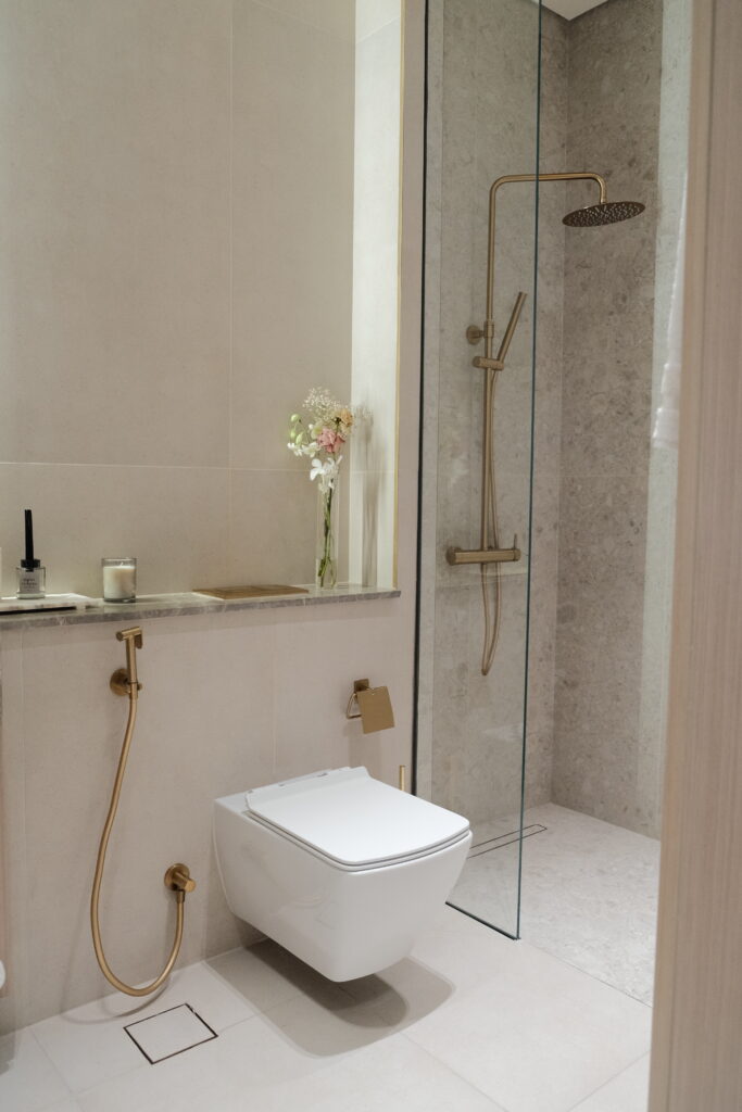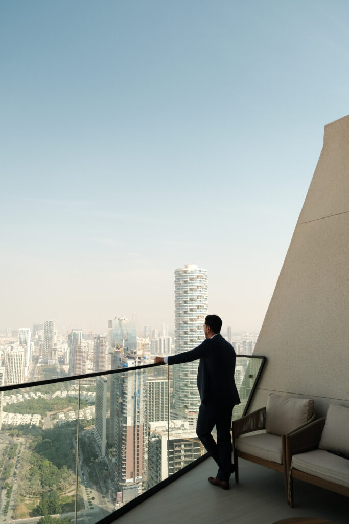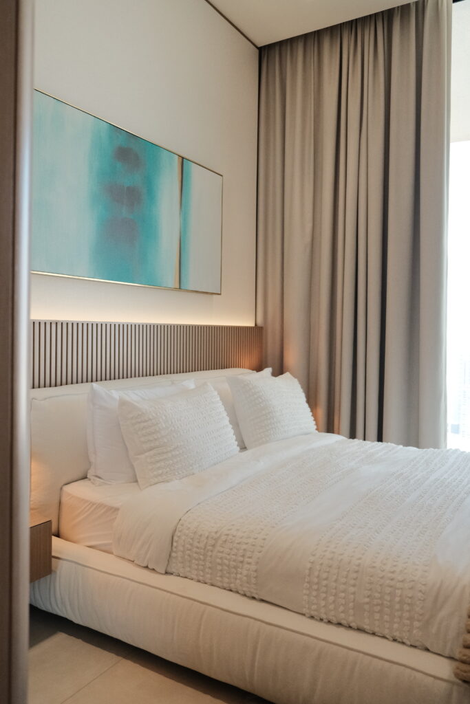 Aujourd’hui, l’équipe SOPRA a pu visiter un somptueux appartement de 3 chambres fraîchement achevé. Ce bien se distingue par ses finitions haut de gamme et son agencement raffiné. Cerise sur le gâteau, il dispose d’un jacuzzi privatif sur le balcon, une particularité qui fait écho aux bassins privés prévus pour certaines résidences de la tour. Depuis le 39ième étage, la vue panoramique sur la ville est tout simplement spectaculaire, offrant un tableau imprenable du paysage urbain de Dubaï à toute heure.