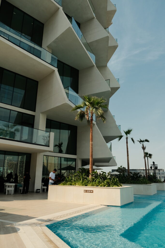 - Une piscine à débordement panoramique sur le toit, complétée de bassins privés pour certaines suite