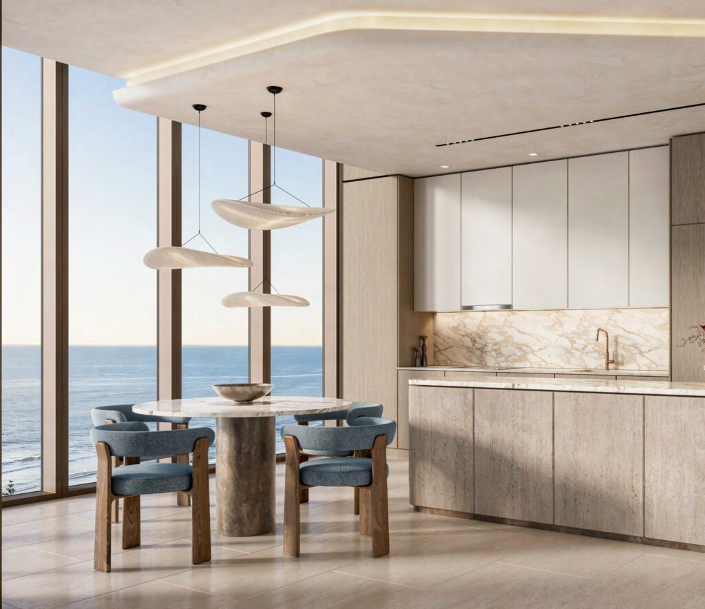 L’intérieur de chaque logement reflète le soin extrême apporté aux finitions et au design. La hauteur sous plafond de 3,2 mètres dans les séjours apporte une impression d’espace majestueux, tandis que de larges baies vitrées cadrent des panoramas à couper le souffle sur l’eau et la ville. Les matériaux choisis sont nobles et durables : sols en marbre ou en bois haut de gamme, plans de travail en pierre naturelle, boiseries sur mesure… Les cuisines ouvertes allient esthétique contemporaine et fonctionnalité, équipées d’un électroménager intégré de dernière génération et de rangements astucieux. Palettes de tons neutres, lignes épurées et éclairages soignés créent une atmosphère intérieure raffinée et apaisante, propice à la détente. Chaque détail – du revêtement tactile des surfaces aux agencements ergonomiques – a été pensé pour offrir un cadre de vie sophistiqué, facile à aménager et répondant aux exigences des résidents les plus pointilleux.