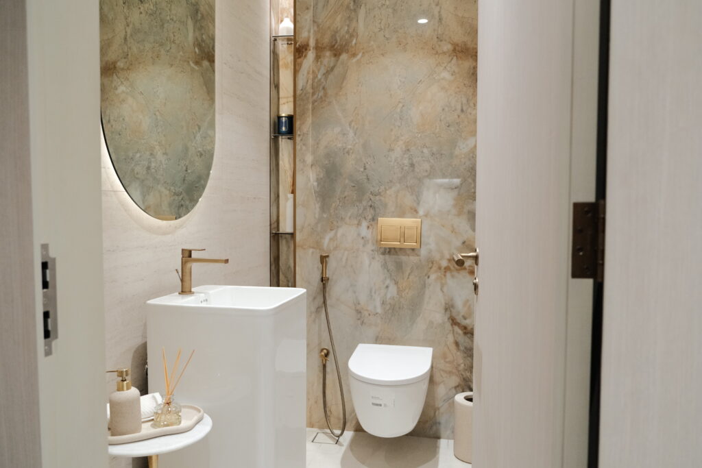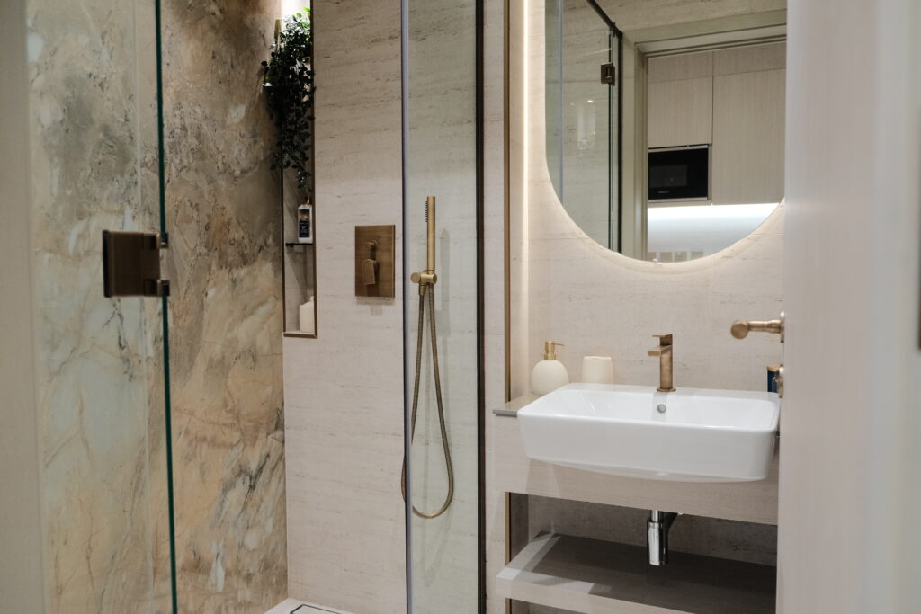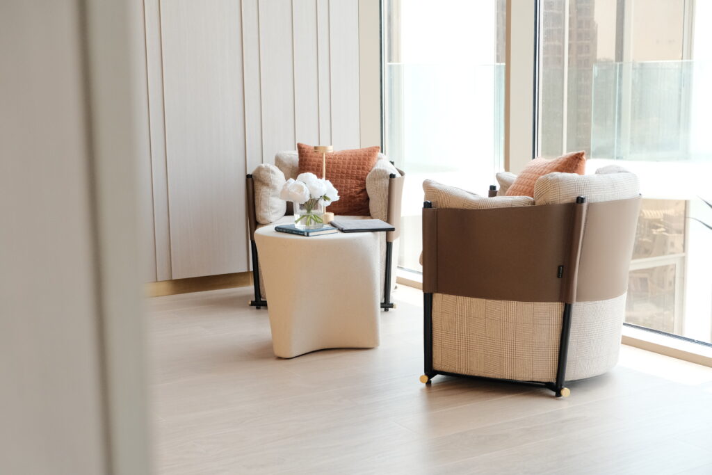 Lors de la visite, nous avons pu entrer dans un appartement témoin d’une chambre ainsi que dans un studio, histoire de se faire une idée concrète. Verdict ? On a été conquis. L’appartement une chambre intègre un coin buanderie bien pratique et même un espace bureau intégré, astucieusement aménagé pour le télétravail. En 2025, qui n’a pas envie d’un petit coin home office chez soi ? Le studio, quant à lui, paraît étonnamment spacieux grâce à un agencement malin et du mobilier pensé sur mesure pour optimiser chaque mètre carré. Chaque détail semble avoir été soigné : rangements intégrés à profusion, éclairage d’ambiance indirect qui met en valeur les volumes, matériaux nobles au toucher… C’est élégant sans être ostentatoire, du haut de gamme discret comme on l’aime. On a presque du mal à croire qu’il s’agit d’appartements témoins tant tout est fignolé. On ressent vraiment la patte d’Imtiaz dans les finitions : rien ne dépasse, tout est aligné au millimètre, avec ce petit supplément d’âme dans le design qui fait la différence.